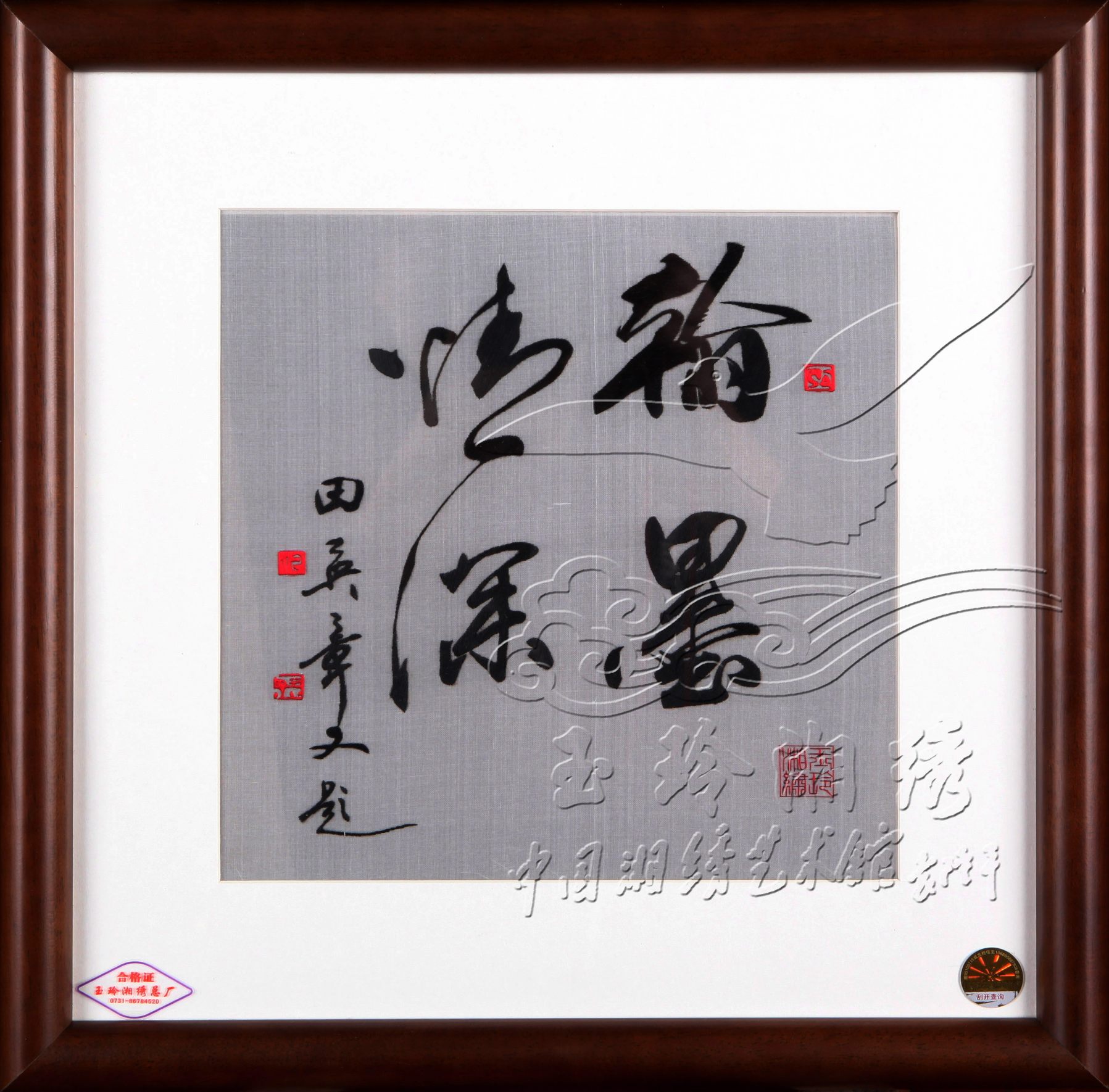 满意100热线:400-0731-100 联系的时候可以说:请问货号为:1917的翰墨情深产品,规格是:带框:39*39(cm)